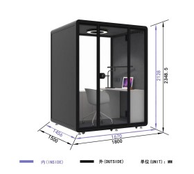 產品特點:移動隔音學習室,采用鋁型材框架,金屬殼體,靜電噴涂工藝,美觀大方。內飾板為環保吸聲裝飾材料,有效控制艙內混響時間,保證良好的艙內音質效果。地板由隔振層、隔聲層、防滑裝飾層多層組合,將隔音倉與地面的結構噪聲傳播途徑予以隔絕。大面積通透玻璃門窗,由多層夾膠安全玻璃構成中空結構,隔音又保溫。通過精良的加工生產工藝及精準的裝配咬合設計,隔音學習室整體的密封性非常好,為學習以及工作良好的隔音效果提供了重要保障。