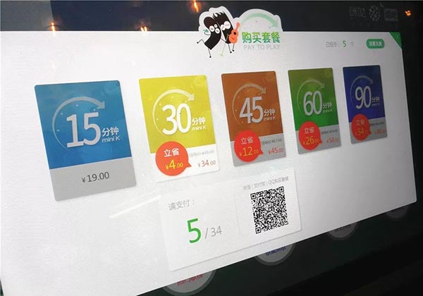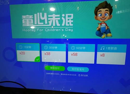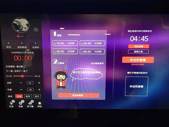 迷你自助ktv唱吧怎么收費(fèi)?多少錢一小時?掃描二維碼登錄后發(fā)現(xiàn),每臺機(jī)器每天有著限定的免費(fèi)試唱名額,名額用完后,只能試唱更短的時間,如果還想繼續(xù)唱歌就要充值。屏幕上顯示,一首歌曲付費(fèi)5元,包時15分鐘20元,一小時64元。