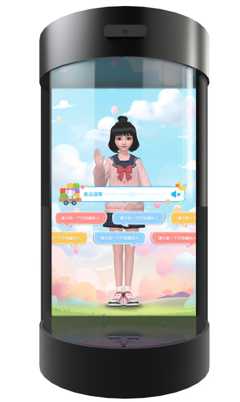 全息艙:立方體或圓形全息艙內,虛擬人以逼真3D效果“躍然眼前”,支持全方位、沉浸式交互體驗,用戶仿若穿越時空,與虛擬人面對面共赴文化之約,于光影交錯間領略知識魅力。