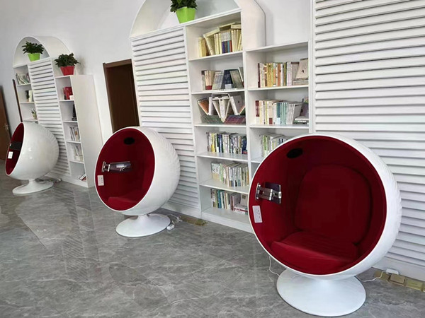 太空艙由PAD+沙發+藍牙音響構成,含有閱讀、聽書、視頻等功能,內含電子圖書2萬冊,有聲圖書2萬輯等。豐富的資源,從而吸引師生,大大提高了師生閱讀的興趣和拓寬師生的閱讀范圍。